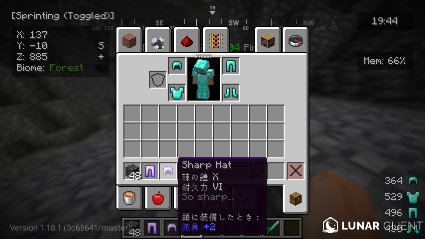 強い敵「Infernal Mob」はデフォルト設定で自然スポーンします。レベルがあり、高いほど強くなっていきます。ドロップするアイテムもレベルによって違う気がします?