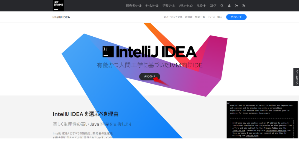 まずはこちらからインストールファイルをダウンロードします。IntelliJ IDEAを使用します。
