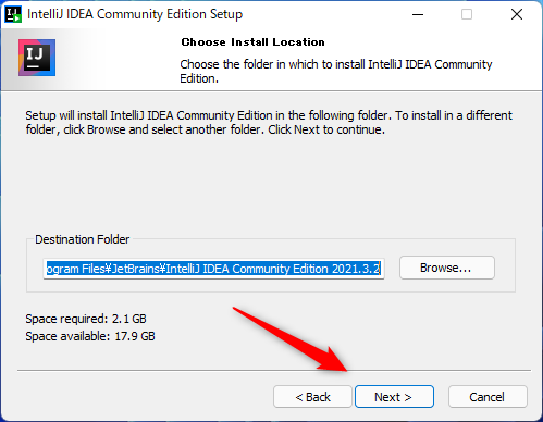インストール場所は変更の必要はありません。Nextをクリック